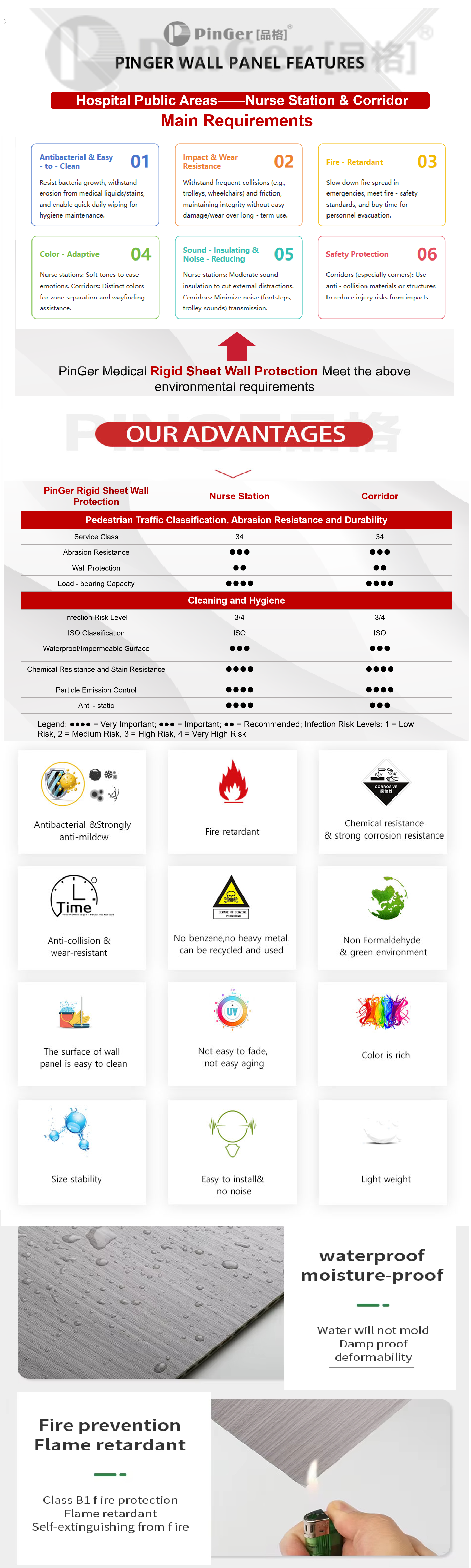 Dari rumah sakit hingga panti jompo dan tempat penitipan anak. Dari kamar hingga koridor, PinGer menawarkan kebersihan dan ketahanan benturan yang tak tertandingi, kemudahan perawatan yang luar biasa, dan desain yang istimewa.