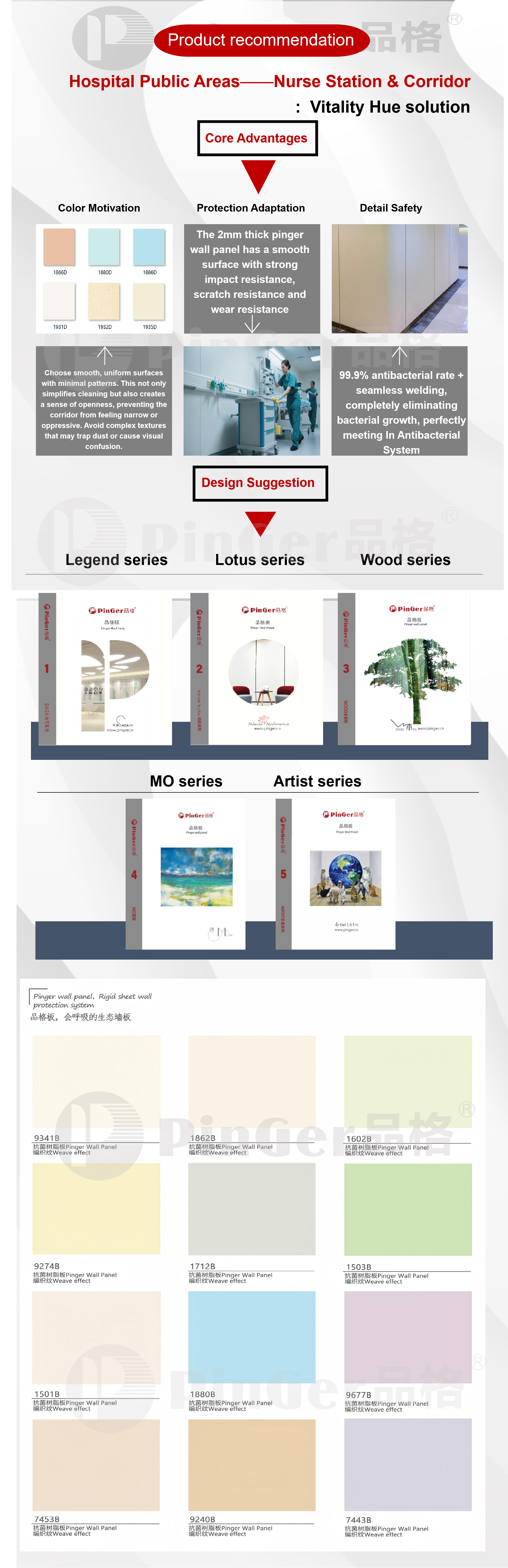 Solusi panel dinding Pinger untuk ruang perawat dan koridor rumah sakit dengan konsep "Vitality Hue".