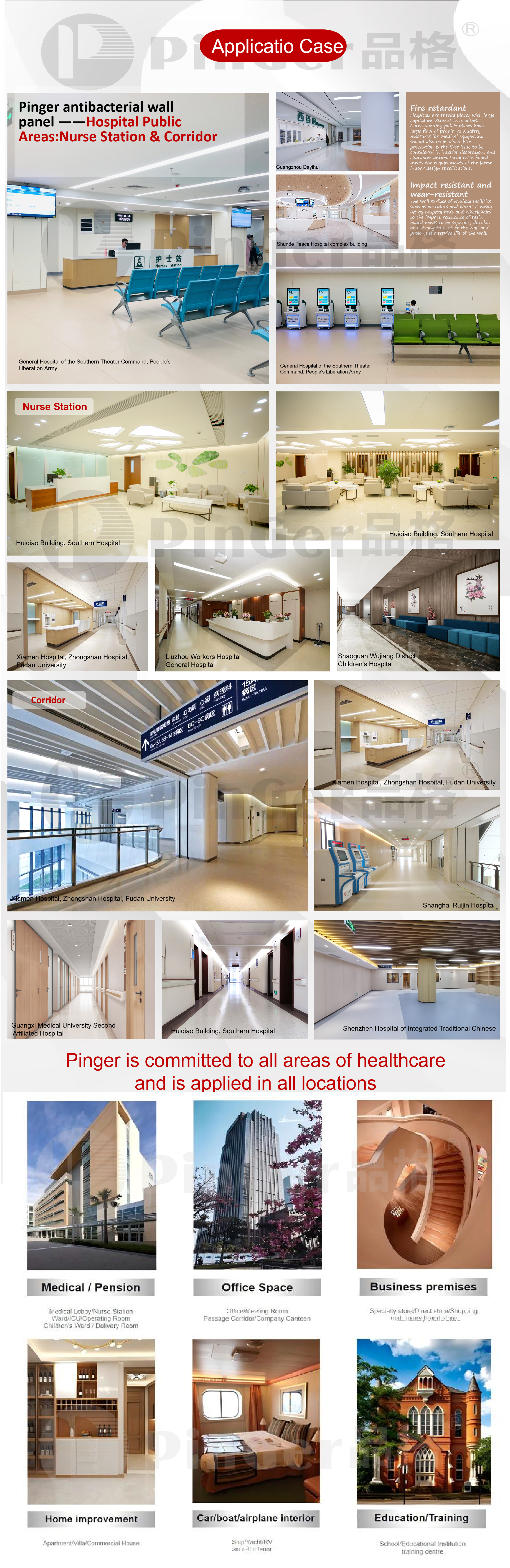 ●Warna Pinger terintegrasi di seluruh bagian, membantu mengurangi perubahan warna yang disebabkan oleh goresan. Segmen Bangunan: Penerbangan & Transportasi, Pendidikan, Kesehatan, Perhotelan, Perkantoran & Penggunaan Campuran, Ritel, Perumahan Lansia, Olahraga & Hiburan