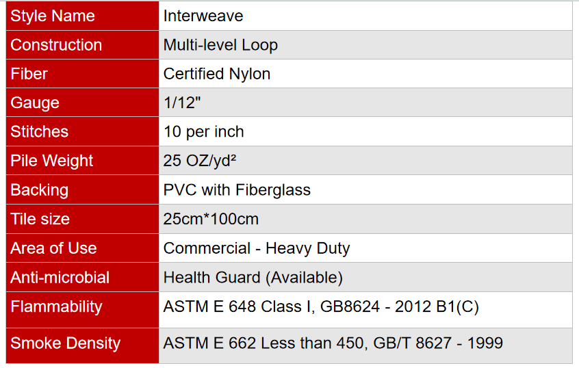 Di ruang komersial, keausan memang tak terelakkan—namun Interweave tetap unggul. Struktur loop multi-level, serat nilon bersertifikat, dan jahitan berdensitas tinggi memastikannya tahan terhadap lalu lintas pejalan kaki yang padat, tumpahan, dan penggunaan sehari-hari selama bertahun-tahun. Ucapkan selamat tinggal pada penggantian yang sering—Interweave adalah investasi untuk keindahan dan performa jangka panjang.