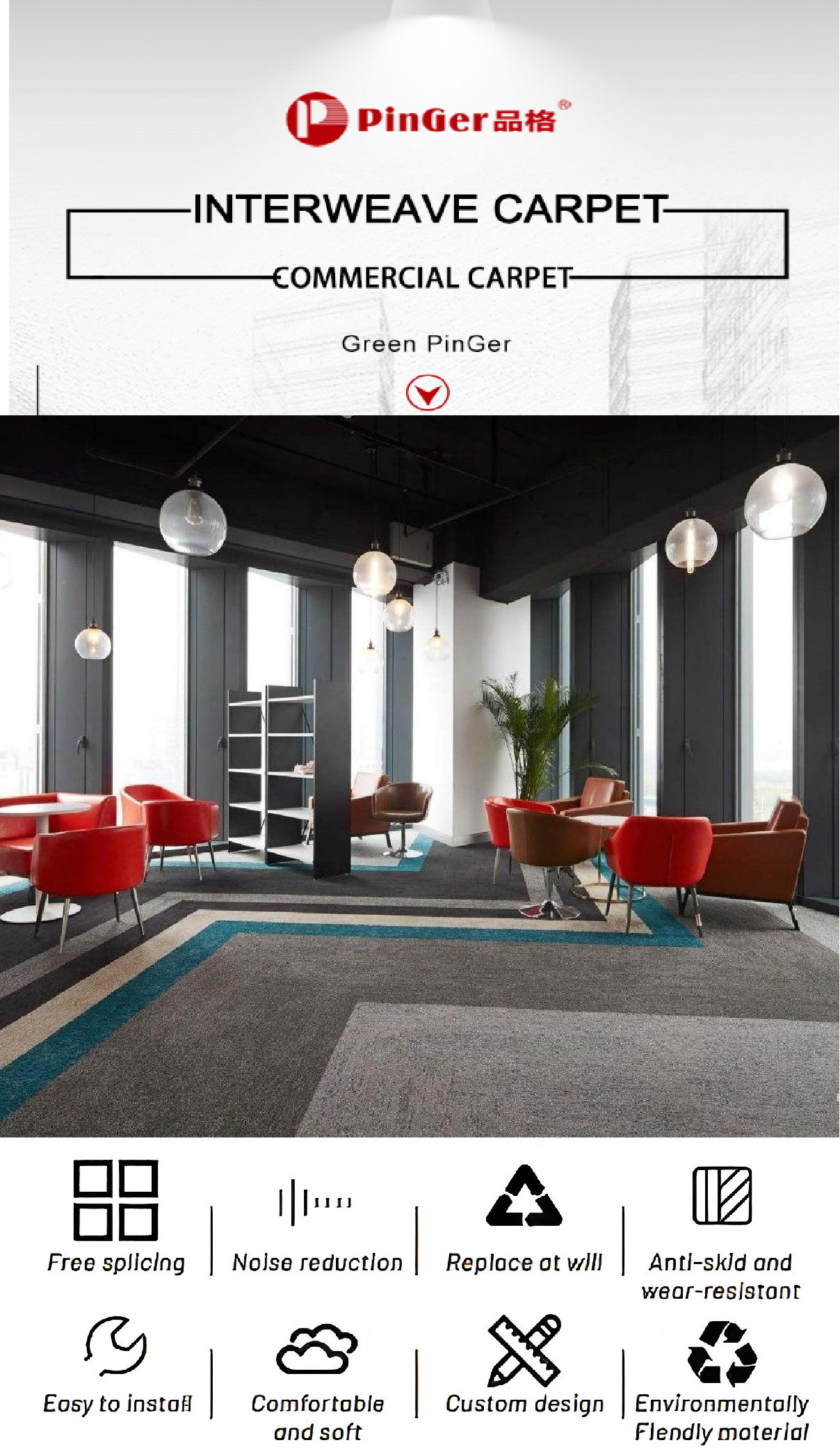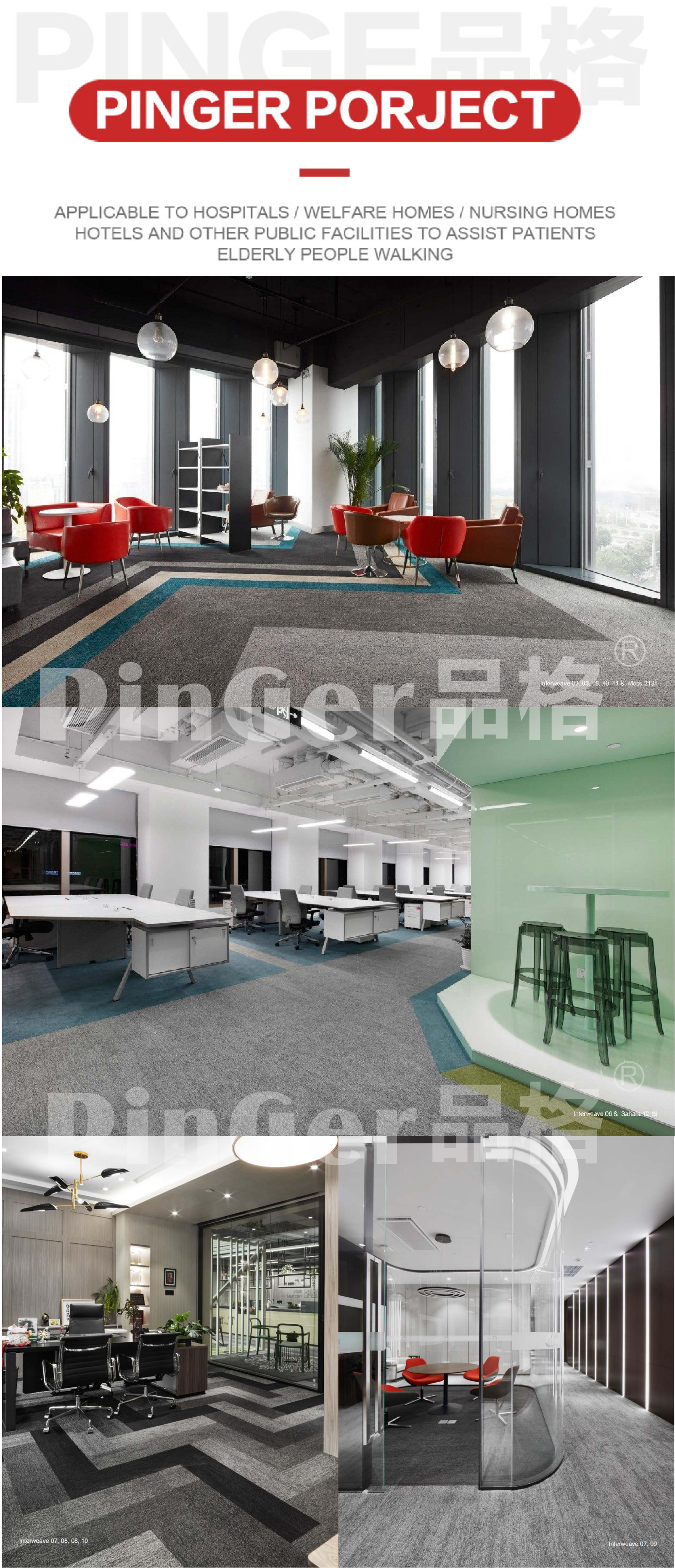 Karpet Komersial PinGer Interweave, Karpet Lantai Ramah Lingkungan, Karpet Ubin Interlocking
